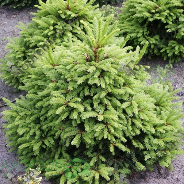 Ель обыкновенная (Picea abies) Олендорфи - этот замечательный карликовый сорт, в высоту максимально достигает 9 м, в ширину – 6 м, но к 30 годам редко превышает 2,0-2,5 м. Благодаря такой медлительности, в групповых посадках позволяет годами поддерживать заданную геометрию композиции, использовать широкий ряд декоративных растений. В молодом возрасте крона - округлая, а у взрослых – широко коническая и плотная, с несколькими вершинами. Ветви у растения раскидистые и поднимающиеся, хвоя желтовато-зелёная, а почки коричневого или тёмно-оранжево-коричневого цвета, вырастают до 1-3 сантиметров в длину. Плоды – конусовидные розовые шишки, при созревании становятся коричневыми. Ель «Олендорфи» прекрасно смотрится в окружении миниатюрных роз, хост, папоротников, почвопокровных растений.