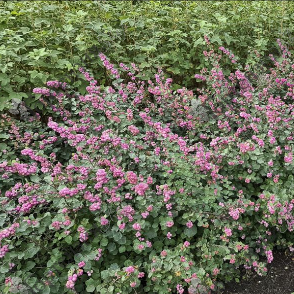 Снежноягодник 'Симфони Рамбл', Symphoricarpos 'Symphony Rumble' — особенно цветущий и плодоносный сорт снежноягодника с ягодами очень яркого пурпурно-розового цвета, высотой до 90 см.. Этот листопадный кустарник можно заметить в конце лета и в течение всей зимы, ветви которого покрыты  ягодами в небольших гроздьях. Очень легко выращивать, не требует особого ухода.
