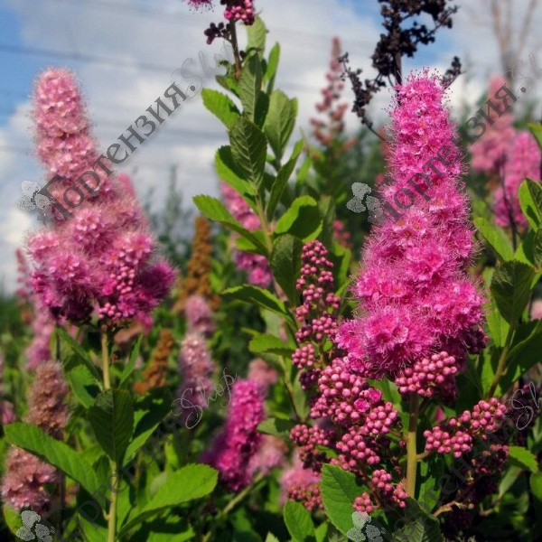 Спирея Билларда Spiraea Billardii  - гибридный сорт спиреи иволистной. Это высокий куст до 2,0 м с длинными, прямыми, раскидистыми ветвями. Молодые побеги тонкие, покрыты листьями по всей длине, растут вертикально.Листья зеленые,к осени становятся буровато-красными. Цветки мелкие, приятного ярко-розового цвета со сладковатым ароматом образуют узкие густые метельчатые соцветия. Цветет со второй половины лета до поздней осени. Светолюбивое, засухоустойчивое выносливое растение. Отличается чрезвычайной зимостойкостью. К почвам не требовательна, растет практически на любых. Не любит застойного увлажнения. Теневынослива, но гораздо лучше цветет на солнечных участках. Растет очень быстро. Укрытия на зиму не требуется.