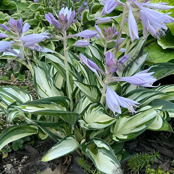 Хоста Фаерворкс (Hosta "Fireworks") – это небольшая, но очень эффектная хоста. Она относится к миниатюрным сортам, достигая в высоту всего 20-30 см, а в ширину – до 40 см.  Главная особенность, конечно же, – это ее листья. Они узкие, ланцетные, слегка волнистые по краям. Центр листа ярко-желтый, почти лимонный, а по краям идет широкая, темно-зеленая кайма. С возрастом желтый центр листа может немного светлеть, становясь более кремовым, но контраст с зеленой каймой остается неизменным. Что касается цветения, то 'Фаерворкс' цветет в июле-августе. Цветки у нее небольшие, лавандового цвета, собранные в рыхлые кисти.  Хотя цветы и не являются главной достопримечательностью этой хосты, они добавляют ей дополнительный шарм. В уходе 'Фаерворкс' достаточно неприхотлива. Она предпочитает полутенистые или тенистые места, защищенные от прямых солнечных лучей, которые могут обжечь ее нежные листья.  Почва должна быть рыхлой, плодородной и хорошо дренированной.  Регулярный полив, особенно в жаркую погоду, необходим для поддержания здоровья и красоты растения.  Благодаря своей компактной форме и яркой окраске, эта хоста отлично подходит для посадки в контейнеры, альпинарии и рокарии. Она прекрасно смотрится в групповых посадках с другими хостами, особенно с сортами, имеющими однотонную зеленую или голубую листву.  'Фаерворкс' также хорошо сочетается с папоротниками, астильбами и другими тенелюбивыми растениями. Морозостойкость высокая.