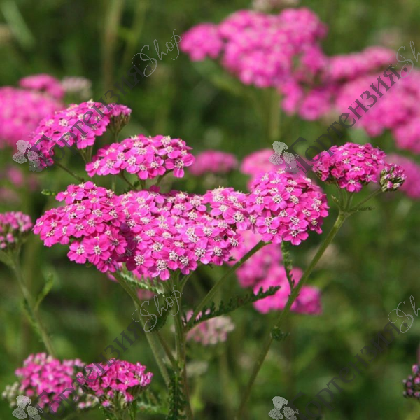 Тысячелистник обыкновенный (Achillea millefolium) Церайс Квин - неприхотливое многолетнее растение с ярко-зелёными листьями и пышными щитковидными соцветиями вишнёво-розового цвета высотой 70-80 см. Цветение продолжительное, с июня по сентябрь.Используется для оформления мавританских газонов, рабаток, миксбордеров. Хорошо подходит как для одиночных, так и для групповых посадок. Морозостойкость -34С.