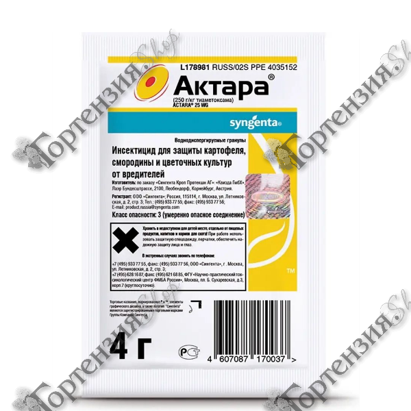 Актара – сильнейший инсектицид для защиты картофеля, смородины и цветочных культур от вредителей. Воднодиспергируемые гранулы. Проникая внутрь растения сохраняет длительную активность против основных вредителей сельскохозяйственных культур. Позволяет бороться со многими видами вредителей.